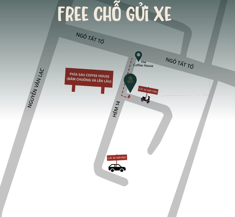 Bọn mình cùng Toà nhà Coffee House nhưng ở phía sau, nên các bạn quẹo vào hẻm thấy cái bảng là thấy bọn mình. Đúng kiểu Arata sống nội tâm - ẩn mình tại một con phố sầm uất Ngô Tất Tố.