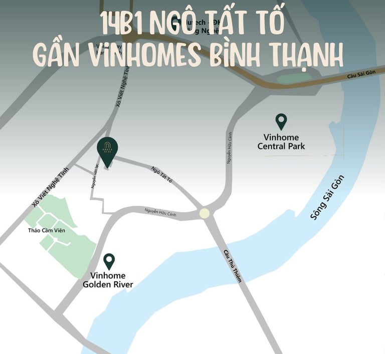 Bọn mình tại địa chỉ 14b1 Ngô Tất Tố, P. 19, Q. Bình Thạnh - Một khu vực năng động gần Sở Thú / Cầu Thủ Thiêm / Hàng Xanh.